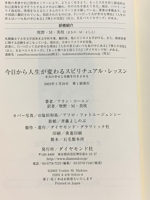 タイトル:今日から人生が変わるスピリチュアル・レッスン: 本当の幸せと奇跡を引きよせる ダイヤモンド社 アラン コーエン
