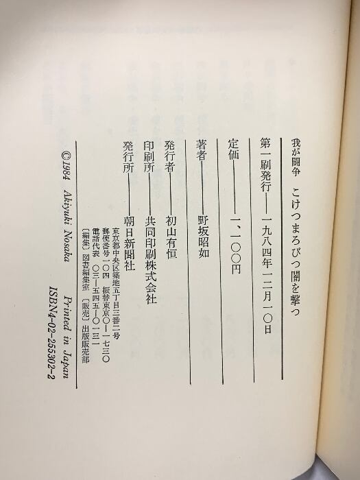 タイトル:我が闘争・こけつまろびつ闇を撃う 朝日新聞出版 野坂 昭如