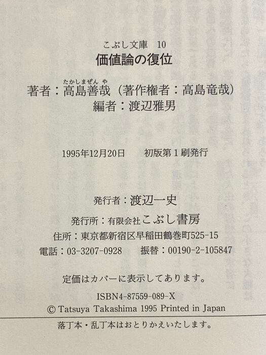 タイトル:価値論の復位 (こぶし文庫 10 戦後日本思想の原点) こぶし書房 高島 善哉
