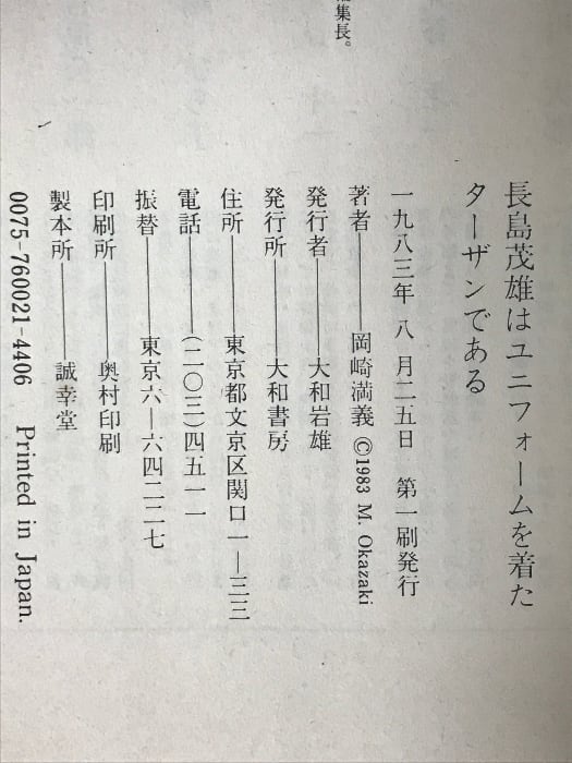 タイトル:長島茂雄はユニフォームを着たターザンである 大和書房 岡崎 満義