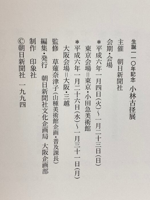 図録 生誕110年記念 小林古径展 朝日新聞社 1994