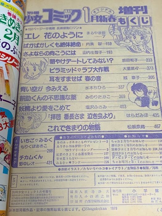5 別冊 月刊少女コミック 昭和54年1月15日増刊号 小学館 エレ花のように 坂田和子 松坂奈緒 みのりたかこ
