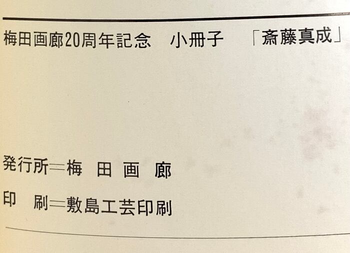 タイトル:図録 斎藤真成 梅田画廊20周年記念 梅田画廊