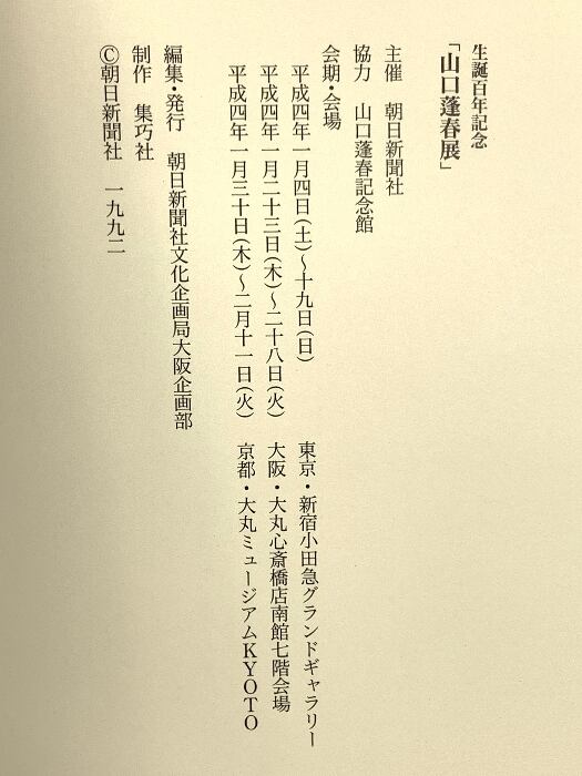 タイトル:図録 生誕100年記念 山口蓬春展 1992 朝日新聞社