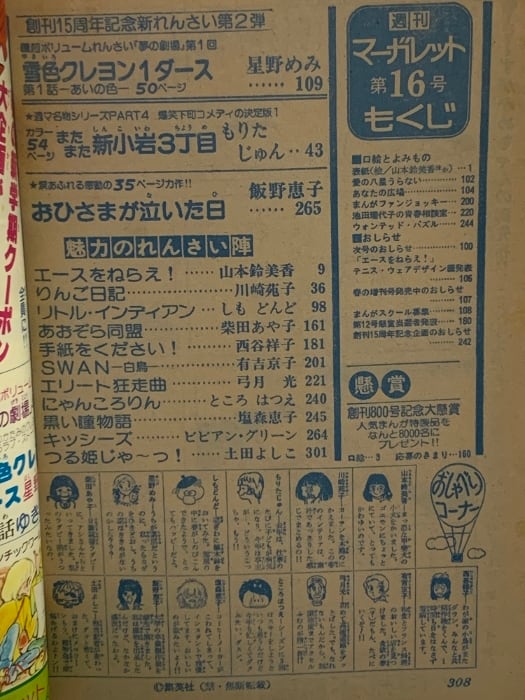 9 週刊 マーガレット 1978 4月9日号 No.16 エースをねらえ 新小岩3丁目 あおぞら同盟 SWAN 集英社