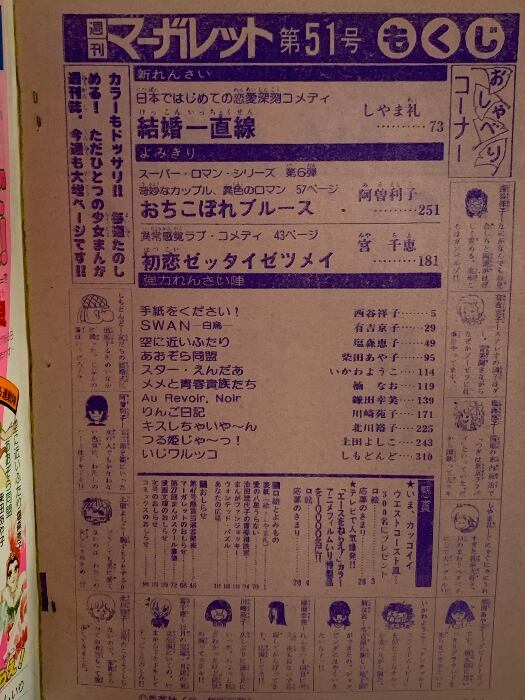 タイトル:15 週刊 マーガレット 昭和53年年 12月10日号 No.51 落ちこぼれブルース 結婚一直線 初恋ゼッタイゼツメイ 集英社