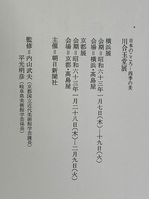 図録 日本のこころ 四季の美 川合玉堂展 昭和63年 朝日新聞社