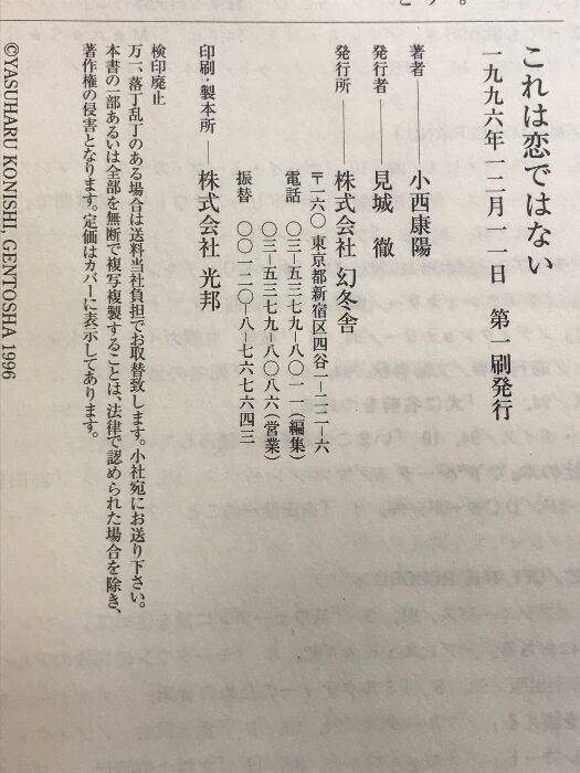 タイトル:これは恋ではない 小西康陽のコラム1984-1996 幻冬舎 1996年 小西康陽