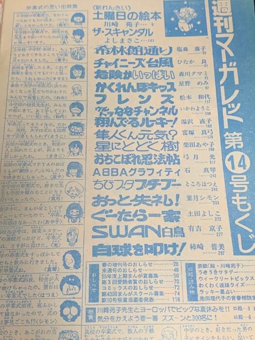 22 週刊マーガレット 1980年4月6日号 NO.14 集英社 土曜日の絵本 よしまさこ フレンズ 危険がいっぱい