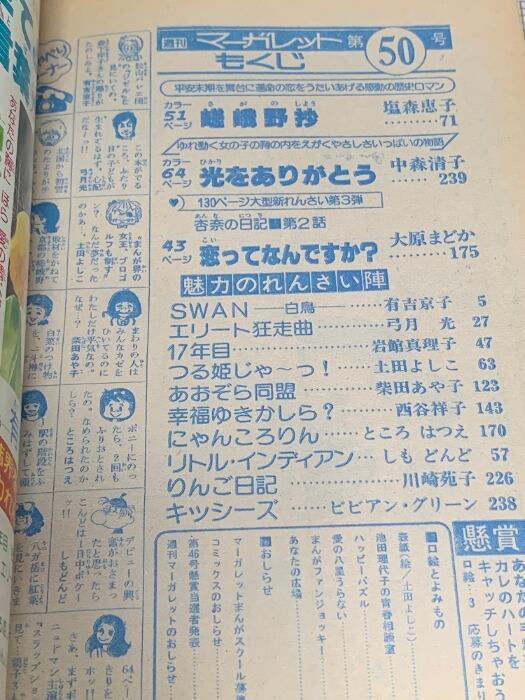 タイトル:23 週刊マーガレット 1977年12月4日号 NO.50 集英社 SWAN あおぞら同盟 土田よしこ 大原まどか