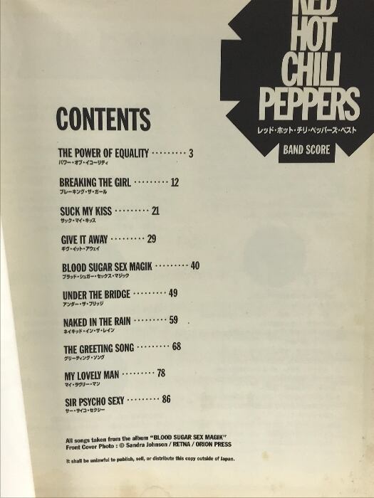 (BS) レッドホットチリペパーズベスト シンコーミュージック (バンドスコア)