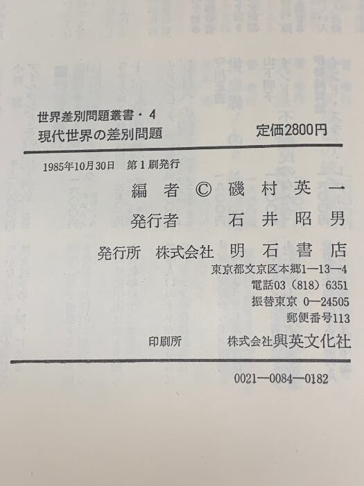タイトル:現代世界の差別問題 (世界差別問題叢書〈4〉) 明石書店 磯村英一