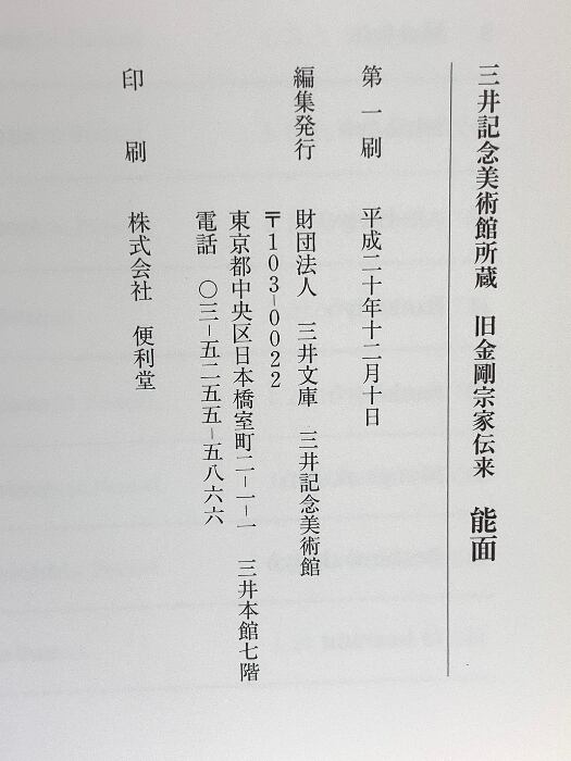 図録 三井記念美術館所蔵 旧金剛綱宗家伝来 能面 2008