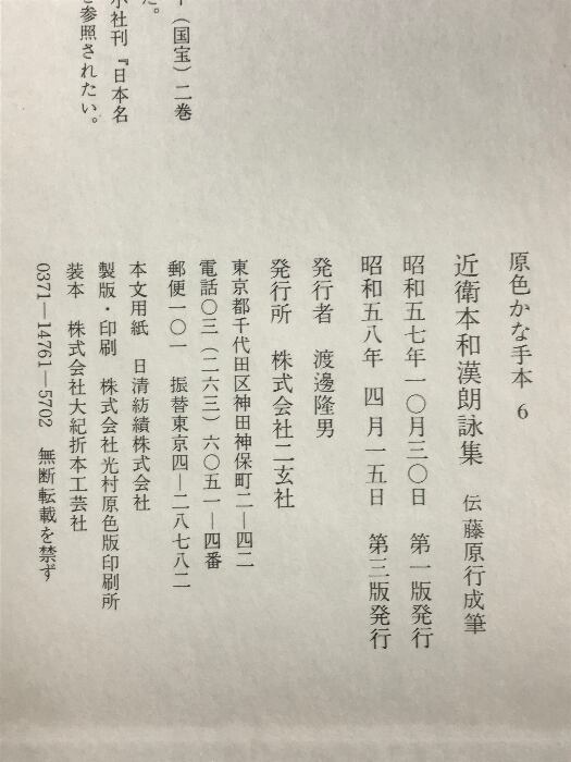 コンディション説明:(原色かな手本6)。箱付き。箱にスレ、ヨレ、ヤケ、傷み、破れ、表紙にスレ、シミ、天地小口にヤケ、シミ、本にヤケ、書き込み、があります。本を読むことに支障はございません。※注意事項※■商品・状態はコンディションガイドラインに基づき、判断・出品されております。■付録等の付属品がある商品の場合、記載されていない物は『付属なし』とご理解下さい。※