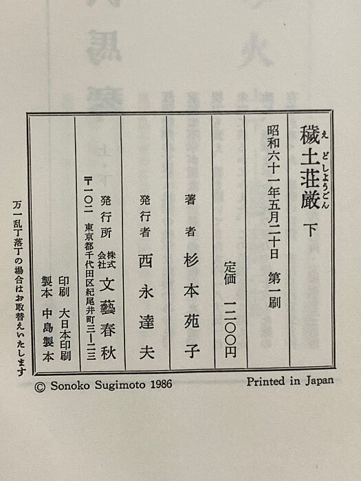 タイトル:穢土荘厳 下 文藝春秋 杉本 苑子