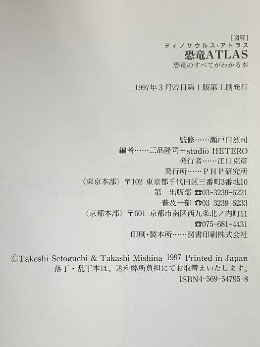 タイトル:図解恐竜ATLAS 恐竜のすべてがわかる本 PHP研究所 三品 隆司
