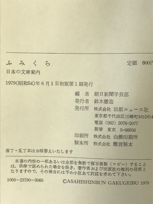 タイトル:ふみくら―日本の文庫案内 出版ニュース社 朝日新聞社