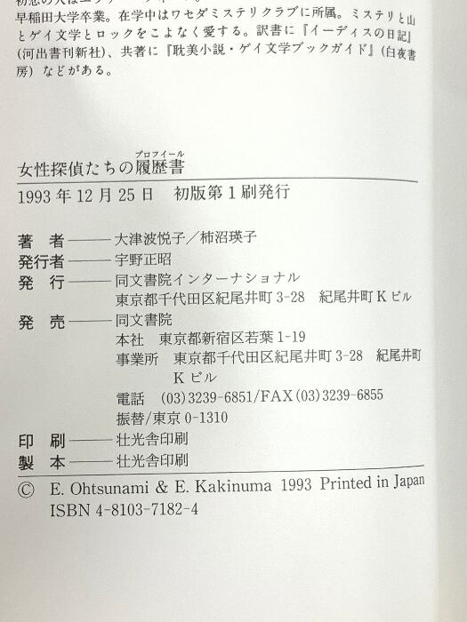 タイトル:女性探偵たちの履歴書 同文書院 大津波 悦子
