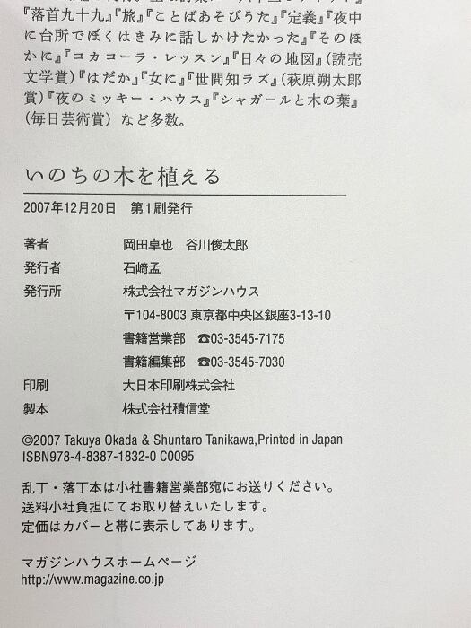 タイトル:いのちの木を植える マガジンハウス 谷川 俊太郎