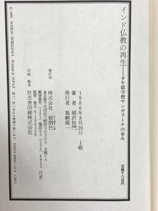 タイトル:インド仏教の再生: 少年留学僧サンガラトナの歩み 郁朋社 堀沢 祖門