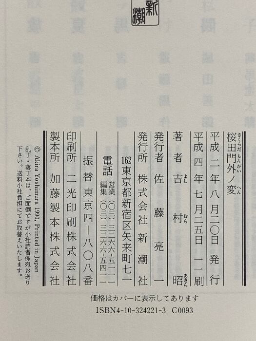タイトル:桜田門外ノ変 新潮社 吉村 昭