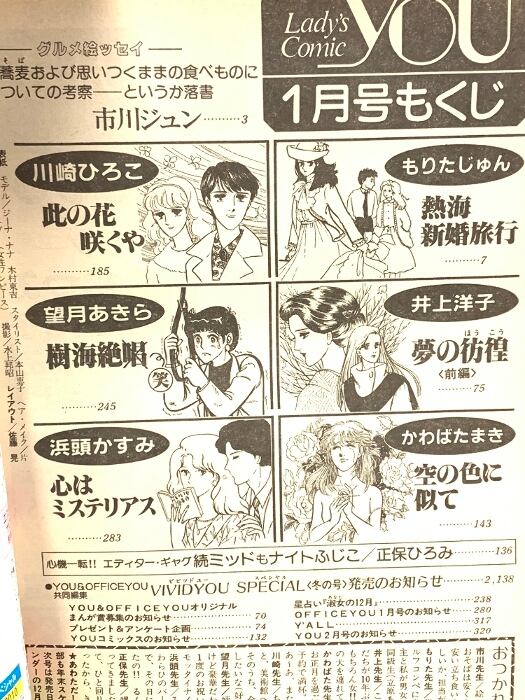 6 Lady's Comic you 昭和61年1月1日 1月号 市川ジュン 井上洋子 かわばたたまき 集英社