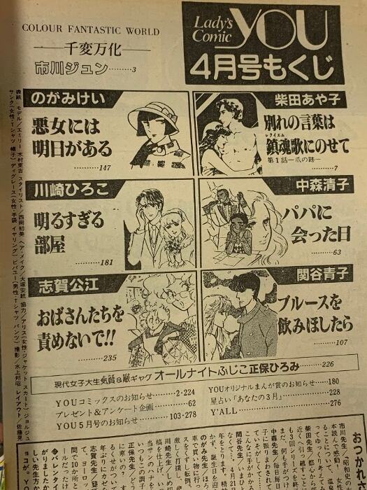 7 Lady's Comic you 昭和59年4月1日 4月号 柴田あや子 市川ジュン 川﨑ひろこ 集英社