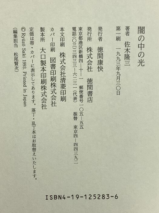 タイトル:闇の中の光 徳間書店 佐木 隆三