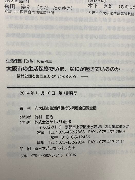 大阪市の生活保護でいま、なにが起きているのか かもがわ出版 大阪市生活保護行政問題全国調査団