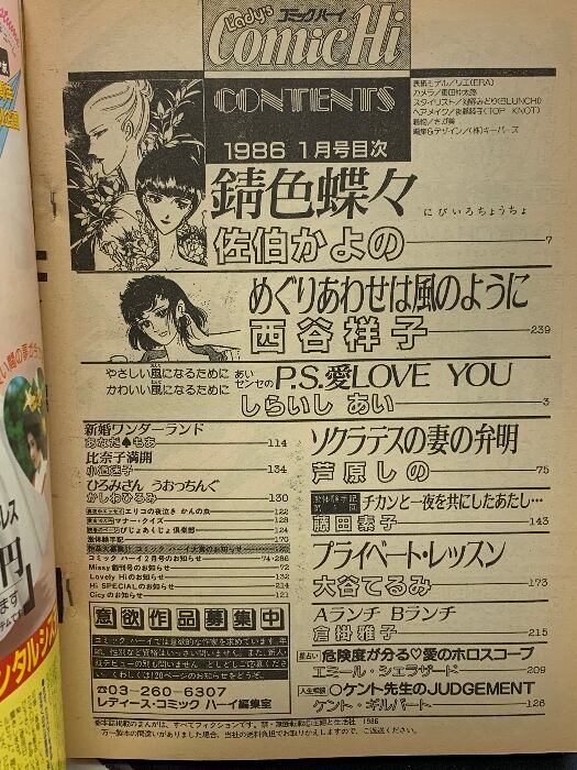 17 Lady's コミックハーイ 昭和61年1月1日 1月号 佐伯かよの 西谷祥子 大谷てるみ 主婦と生活社