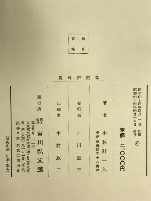 タイトル:長野市史考-近世善光寺町の研究- (長野県) 吉川弘文館刊行 著:小林計一郎 昭和44年