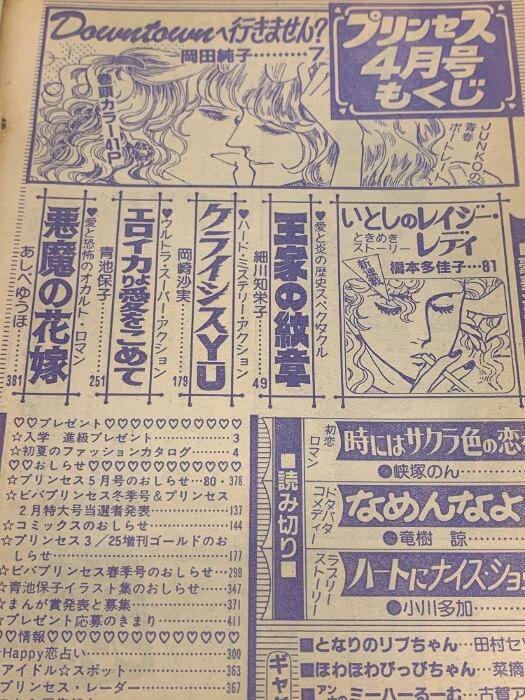 1 プリンセス 4月号 1982年4月1日 秋田書店 岡田純子 橋本多佳子 青池保子