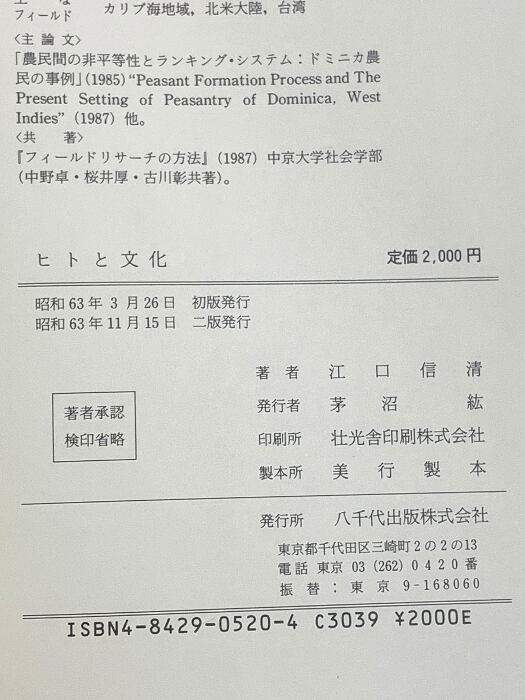 タイトル:ヒトと文化 八千代出版 江口 信清