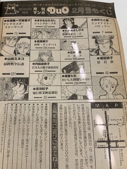 9 月刊マンガデュオ 1982年2月号 朝日ソノラマ ミッドナイト・バチュラー 坂田靖子 山田ミネコ 竹宮惠子 光瀬龍
