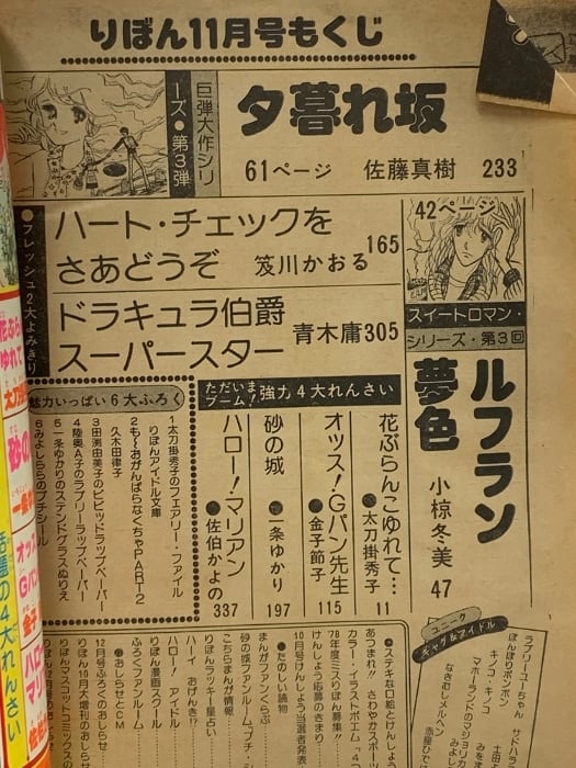 タイトル:35 りぼん 昭和53年11月1日 11月号 小椋冬美 佐藤真樹 太刀掛秀子 集英社