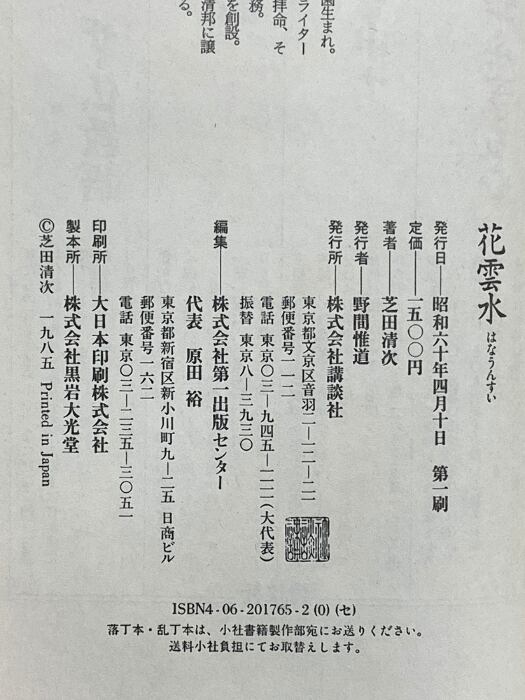 タイトル:花雲水 菓匠として世に生かされて 講談社 芝田 清次