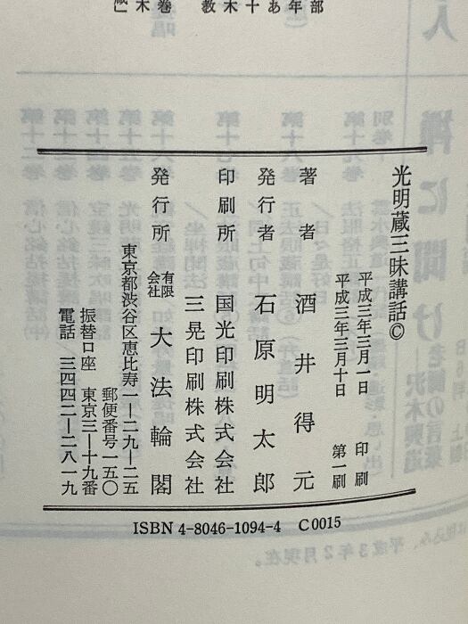 タイトル:光明蔵三味講話 大法輪閣 酒井 得元
