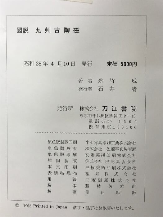 タイトル:【図説】九州古陶磁 発行:刀江書院 著:永竹威 昭和38年