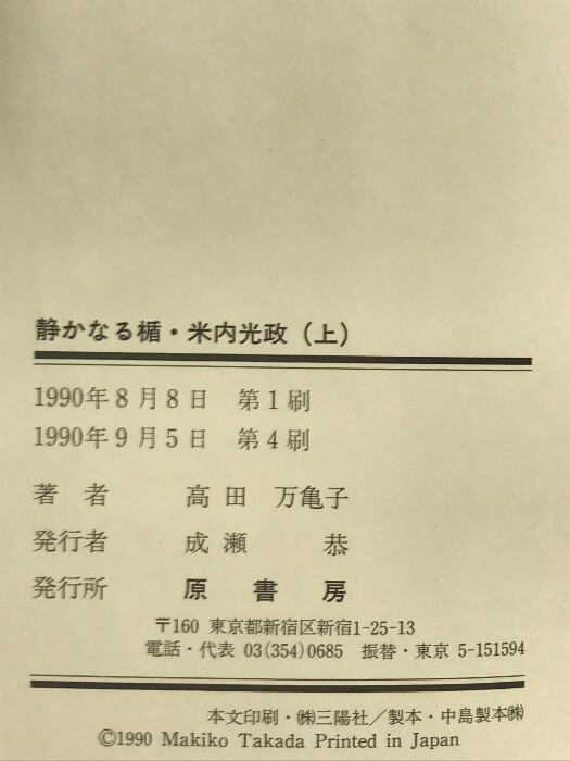 タイトル:静かなる楯・米内光政 (上) 原書房 高田 万亀子