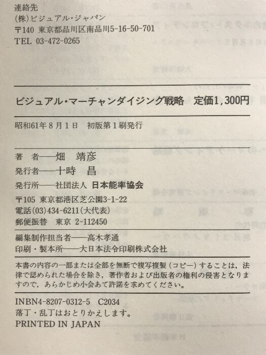 タイトル:ビジュアルマ-チャンダイジング戦略: 企業戦略を具体化する店舗環境づくりノウハウ! 日本能率協会マネジメントセンター 畑 靖彦