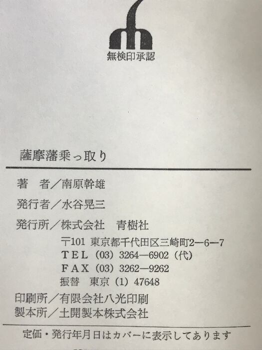 タイトル:薩摩藩乗っ取り 青樹社 南原 幹雄