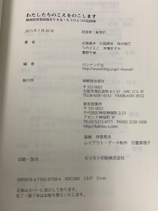 タイトル:わたしたちのこえをのこします ―福島原発事故後を生きる・もうひとつの記録集― 解放出版社 武藤 類子