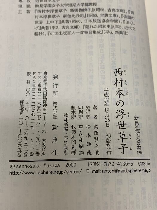 タイトル:西村本の浮世草子(新典社研究叢書 130) 新典社 湯沢 賢之助