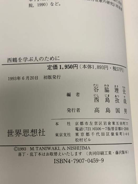 タイトル:西鶴を学ぶ人のために 世界思想社教学社 谷脇 理史