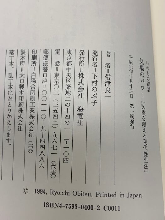 タイトル:気場のパワー: いのちの深層 医療を超える現代養生法 海竜社 帯津 良一