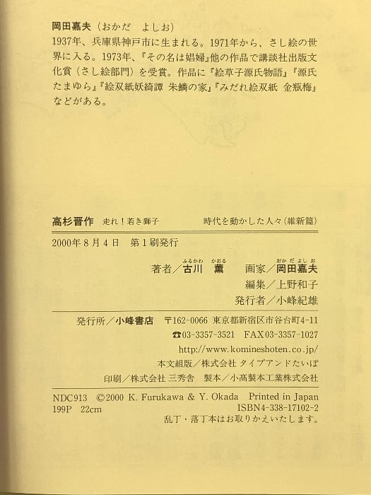 タイトル:高杉晋作: 走れ若き獅子 (時代を動かした人々 維新篇 2) 小峰書店 古川 薫