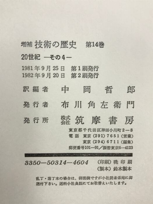 タイトル:(増補)技術の歴史(14)20世紀その4 筑摩書房 訳編:中岡哲郎 1982年
