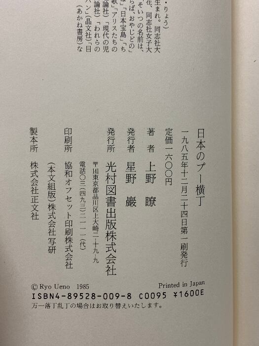 タイトル:日本のプー横丁: 私的な、あまりにも私的な児童文学史 光村図書出版 上野 瞭