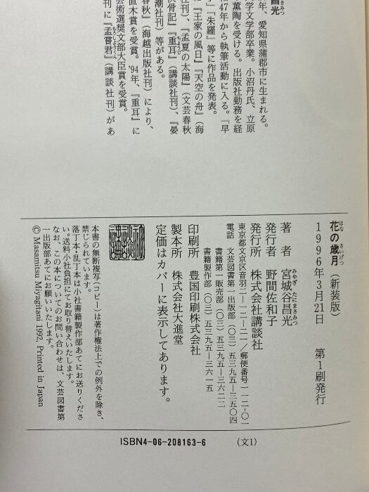 タイトル:花の歳月 新装版 講談社 宮城谷 昌光