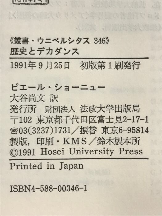 歴史とデカダンス (叢書・ウニベルシタス 346) 法政大学出版局 ピエール ショーニュー